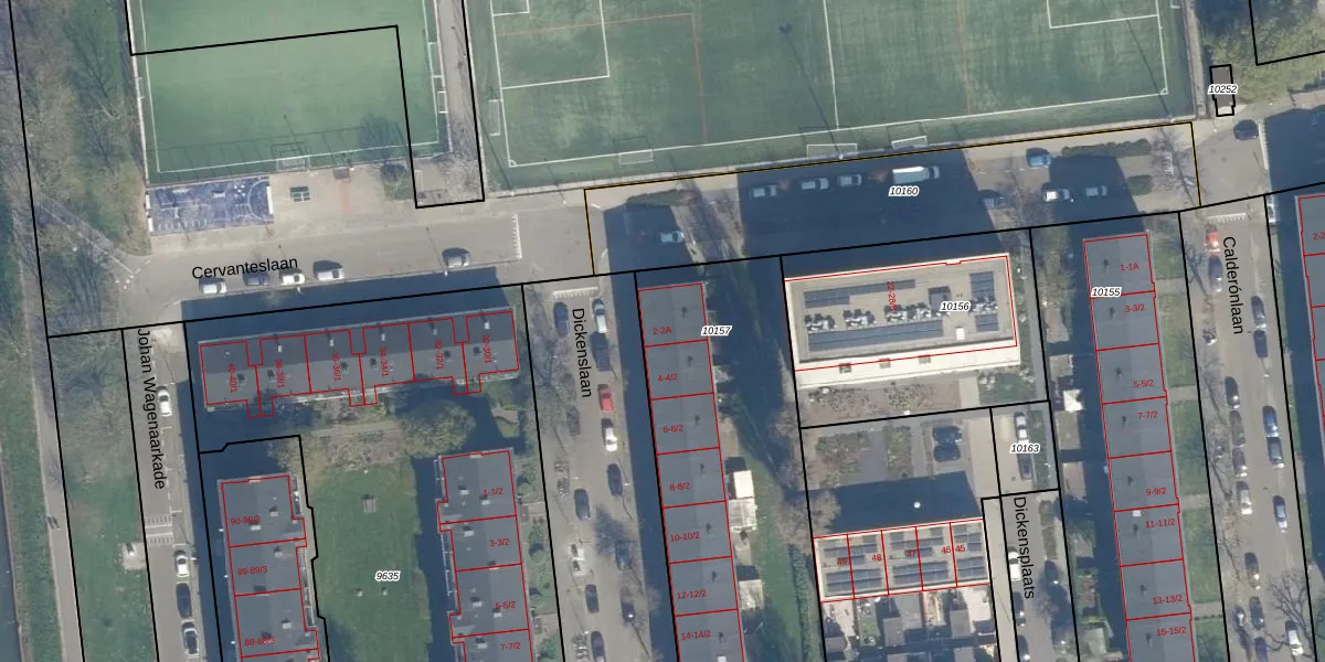 Het perceel waarop Dickenslaan 2 staat heeft een oppervlakte van 2677 m². Dit is een zeer groot perceel. De perceeloppervlakte wordt geregistreerd door het Kadaster. Gedetailleerde informatie over de maten van dit perceel kunt u vinden in het rapport Kadastrale kaart met maatvoering van Dickenslaan 2.