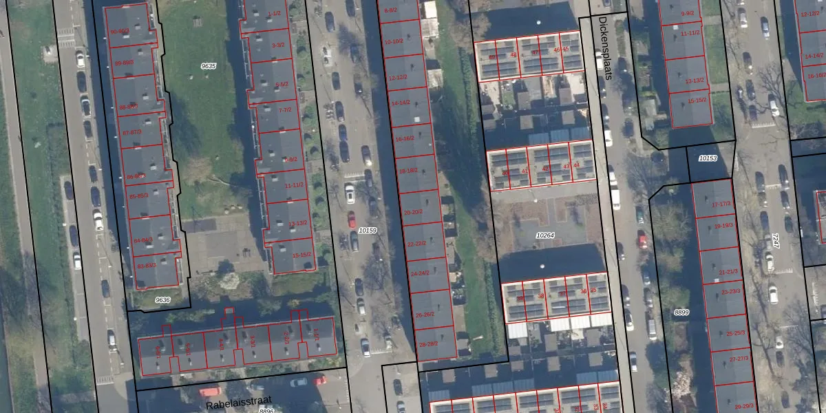 Het perceel waarop Dickenslaan 20-1 staat heeft een oppervlakte van 2677 m². Dit is een zeer groot perceel. De perceeloppervlakte wordt geregistreerd door het Kadaster. Gedetailleerde informatie over de maten van dit perceel kunt u vinden in het rapport Kadastrale kaart met maatvoering van Dickenslaan 20-1.