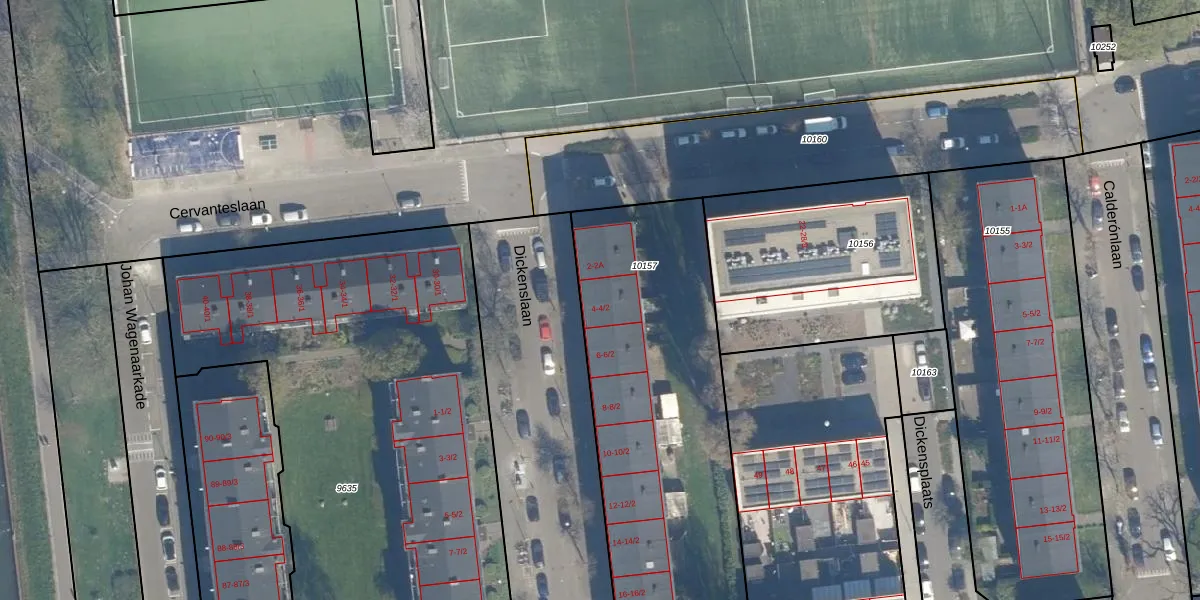 Het perceel waarop Dickenslaan 4-1 staat heeft een oppervlakte van 2677 m². Dit is een zeer groot perceel. De perceeloppervlakte wordt geregistreerd door het Kadaster. Gedetailleerde informatie over de maten van dit perceel kunt u vinden in het rapport Kadastrale kaart met maatvoering van Dickenslaan 4-1.
