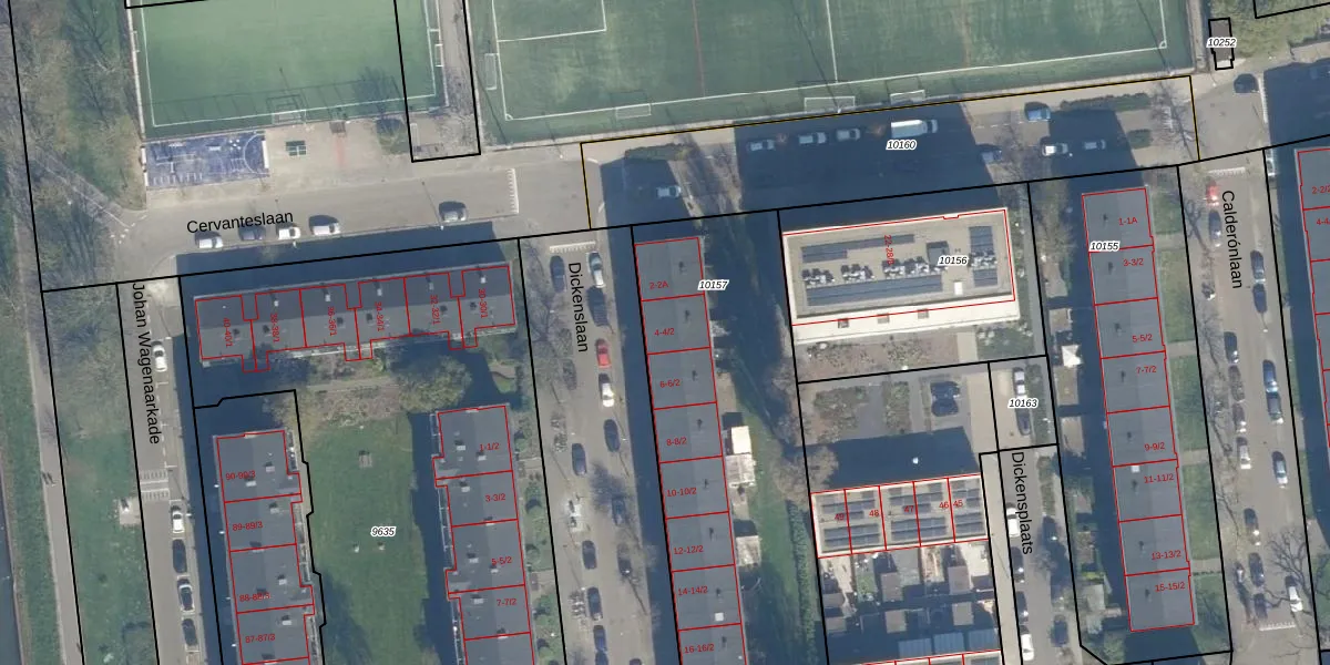 Het perceel waarop Dickenslaan 4-2 staat heeft een oppervlakte van 2677 m². Dit is een zeer groot perceel. De perceeloppervlakte wordt geregistreerd door het Kadaster. Gedetailleerde informatie over de maten van dit perceel kunt u vinden in het rapport Kadastrale kaart met maatvoering van Dickenslaan 4-2.