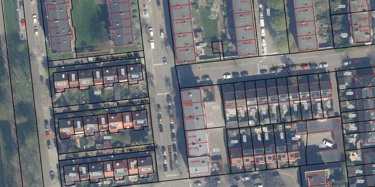Het perceel waarop Dickenslaan 50-2 staat heeft een oppervlakte van 500 m². Dit is een groot perceel. De perceeloppervlakte wordt geregistreerd door het Kadaster. Gedetailleerde informatie over de maten van dit perceel kunt u vinden in het rapport Kadastrale kaart met maatvoering van Dickenslaan 50-2.
