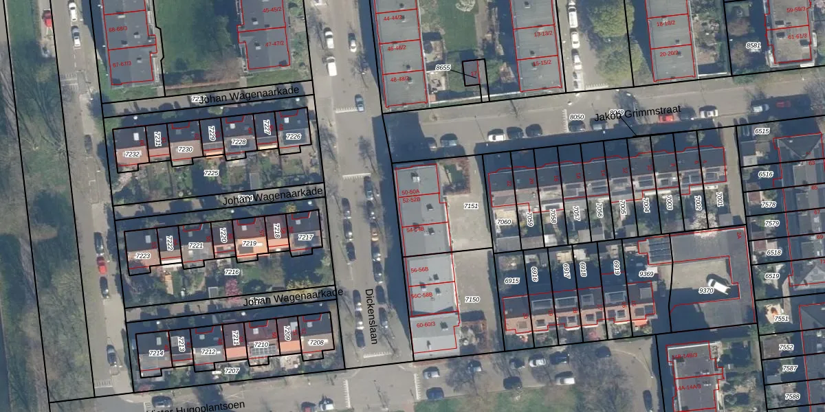 Het perceel waarop Dickenslaan 52-1 staat heeft een oppervlakte van 500 m². Dit is een groot perceel. De perceeloppervlakte wordt geregistreerd door het Kadaster. Gedetailleerde informatie over de maten van dit perceel kunt u vinden in het rapport Kadastrale kaart met maatvoering van Dickenslaan 52-1.