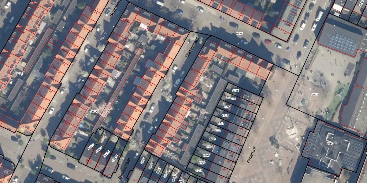 Het perceel waarop Diezestraat 10 staat heeft een oppervlakte van 2043 m². Dit is een zeer groot perceel. De perceeloppervlakte wordt geregistreerd door het Kadaster. Gedetailleerde informatie over de maten van dit perceel kunt u vinden in het rapport Kadastrale kaart met maatvoering van Diezestraat 10.