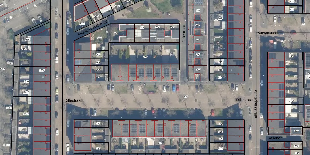 Dillestraat 14 is gelegen op kadastraal perceel CTR00F206. Deze kadastrale aanduiding is uniek en wordt gebruikt door het Kadaster om eigendomsrechten en andere zakelijke rechten vast te leggen. Het perceel maakt onderdeel uit van de kadastrale gemeente Catharijne.