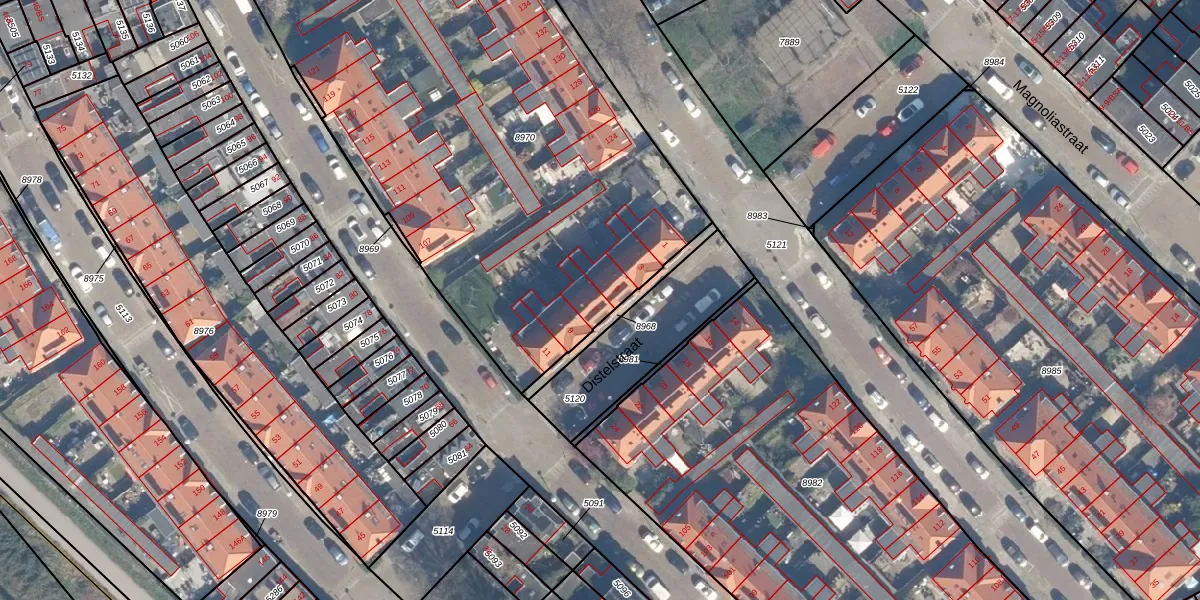Distelstraat 7 is gelegen op kadastraal perceel CTR00B8970. Deze kadastrale aanduiding is uniek en wordt gebruikt door het Kadaster om eigendomsrechten en andere zakelijke rechten vast te leggen. Het perceel maakt onderdeel uit van de kadastrale gemeente Catharijne.