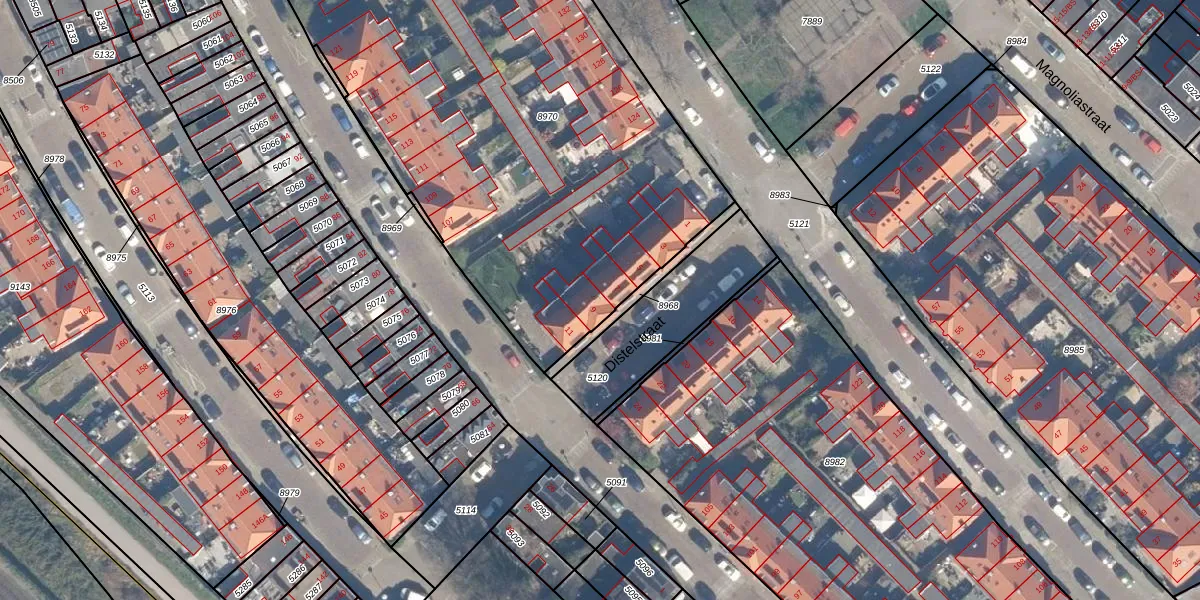 Distelstraat 9 is gelegen op kadastraal perceel CTR00B8970. Deze kadastrale aanduiding is uniek en wordt gebruikt door het Kadaster om eigendomsrechten en andere zakelijke rechten vast te leggen. Het perceel maakt onderdeel uit van de kadastrale gemeente Catharijne.