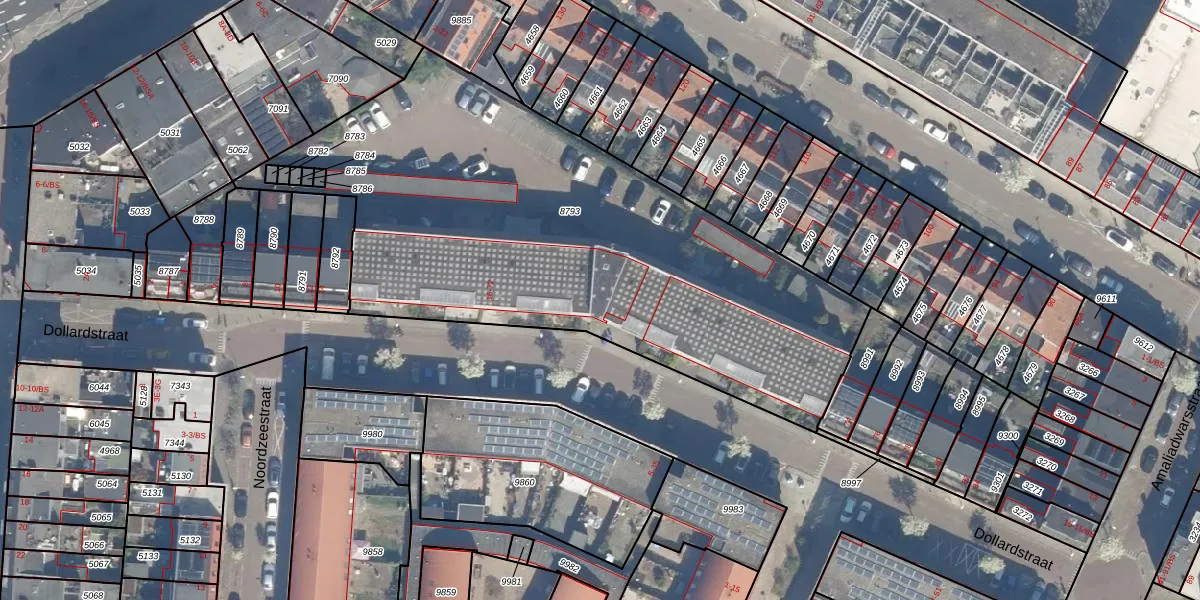 Het perceel waarop Dollardstraat 36 staat heeft een oppervlakte van 2857 m². Dit is een zeer groot perceel. De perceeloppervlakte wordt geregistreerd door het Kadaster. Gedetailleerde informatie over de maten van dit perceel kunt u vinden in het rapport Kadastrale kaart met maatvoering van Dollardstraat 36.