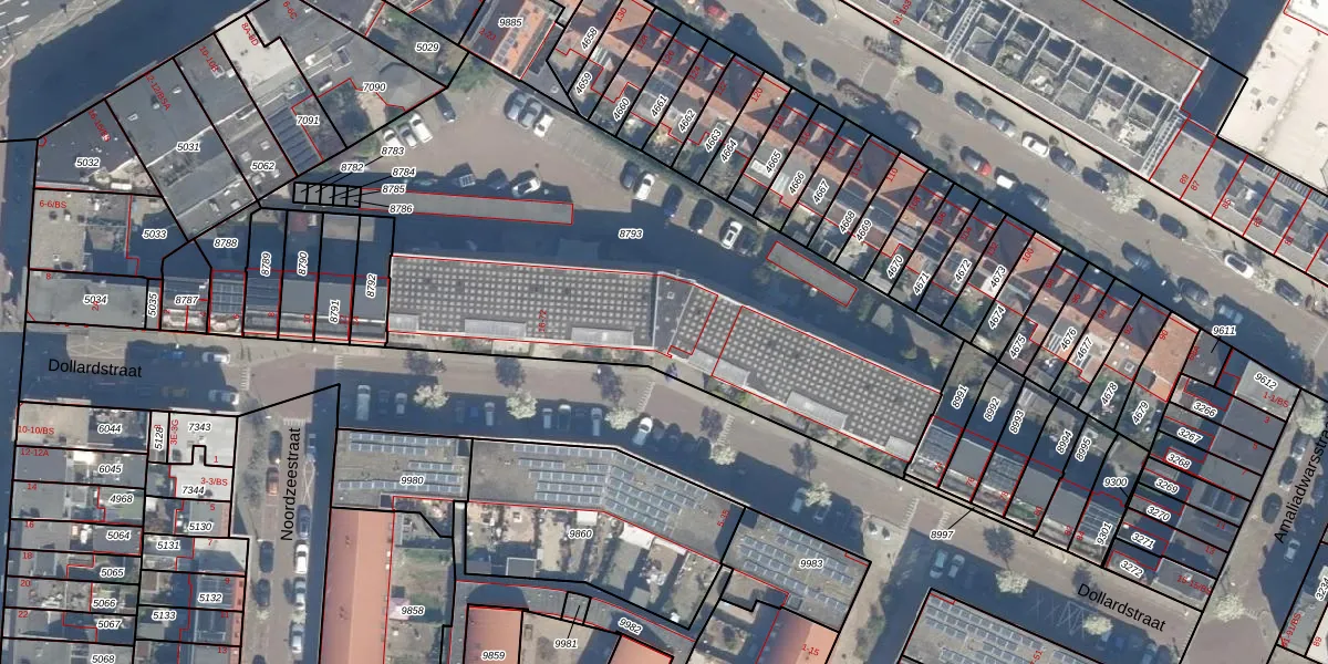 Het perceel waarop Dollardstraat 38 staat heeft een oppervlakte van 2857 m². Dit is een zeer groot perceel. De perceeloppervlakte wordt geregistreerd door het Kadaster. Gedetailleerde informatie over de maten van dit perceel kunt u vinden in het rapport Kadastrale kaart met maatvoering van Dollardstraat 38.