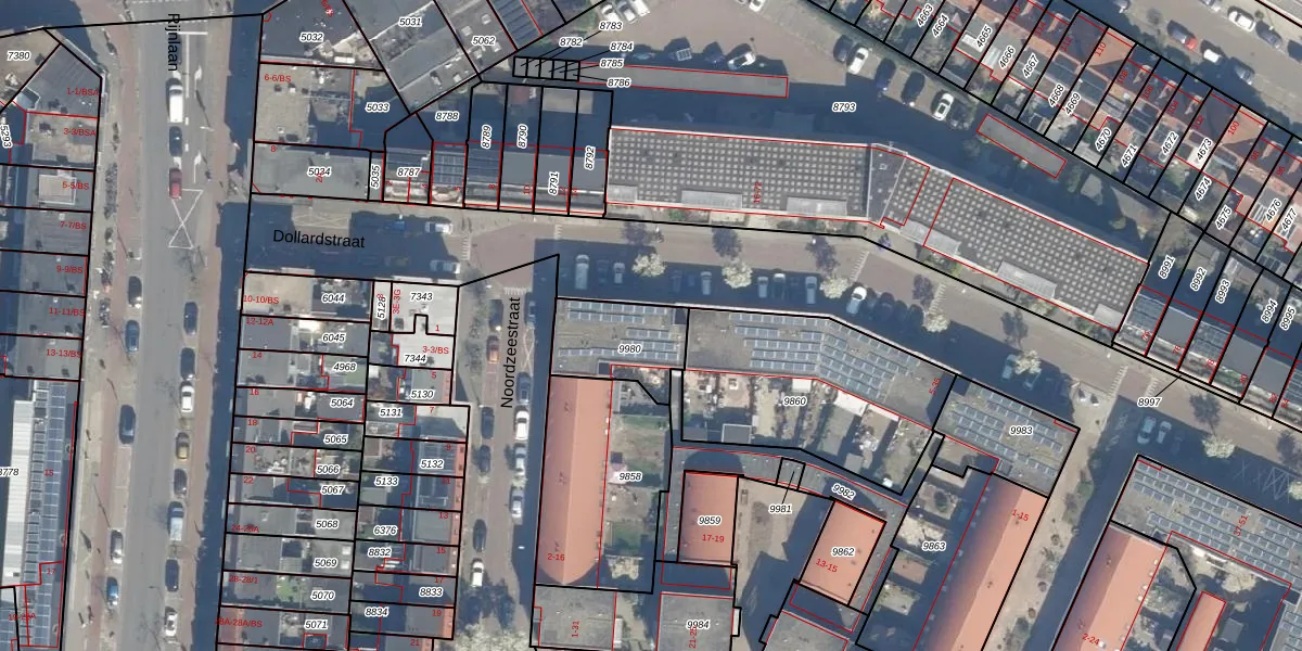 Dollardstraat 7 is gelegen op kadastraal perceel CTR00D9980. Deze kadastrale aanduiding is uniek en wordt gebruikt door het Kadaster om eigendomsrechten en andere zakelijke rechten vast te leggen. Het perceel maakt onderdeel uit van de kadastrale gemeente Catharijne.