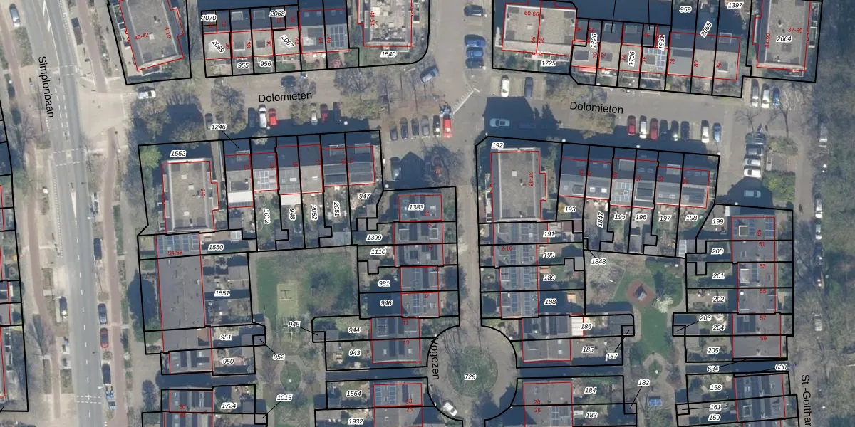 Het perceel waarop Dolomieten 25 staat heeft een oppervlakte van 148 m². Dit is een middelgroot perceel. De perceeloppervlakte wordt geregistreerd door het Kadaster. Gedetailleerde informatie over de maten van dit perceel kunt u vinden in het rapport Kadastrale kaart met maatvoering van Dolomieten 25.