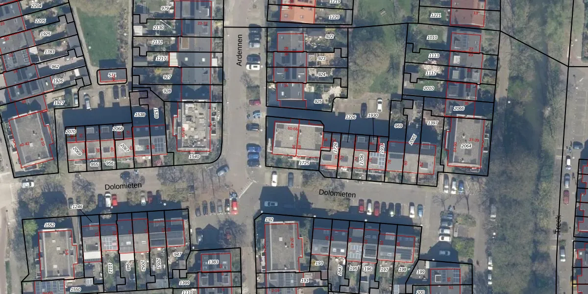 Dolomieten 66 is gelegen op kadastraal perceel UTT00U1725. Deze kadastrale aanduiding is uniek en wordt gebruikt door het Kadaster om eigendomsrechten en andere zakelijke rechten vast te leggen. Het perceel maakt onderdeel uit van de kadastrale gemeente Utrecht.