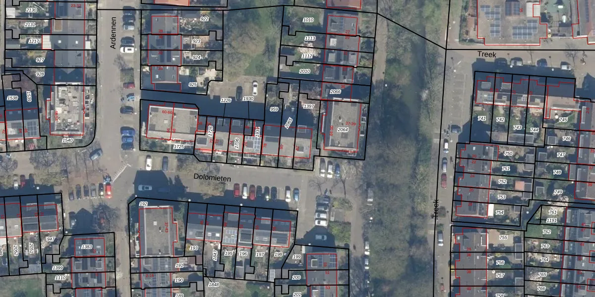 Het perceel waarop Dolomieten 82 staat heeft een oppervlakte van 183 m². Dit is een middelgroot perceel. De perceeloppervlakte wordt geregistreerd door het Kadaster. Gedetailleerde informatie over de maten van dit perceel kunt u vinden in het rapport Kadastrale kaart met maatvoering van Dolomieten 82.