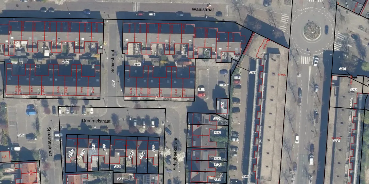 Het perceel waarop Dommelstraat 13 staat heeft een oppervlakte van 2270 m². Dit is een zeer groot perceel. De perceeloppervlakte wordt geregistreerd door het Kadaster. Gedetailleerde informatie over de maten van dit perceel kunt u vinden in het rapport Kadastrale kaart met maatvoering van Dommelstraat 13.