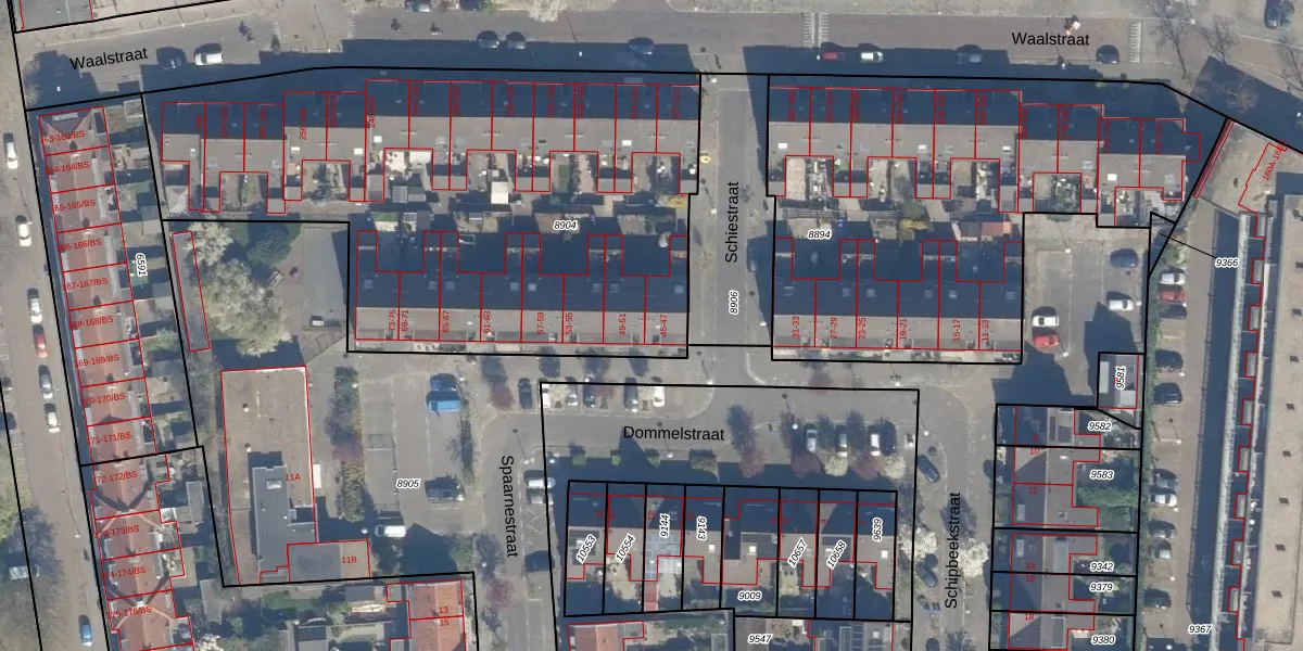 Het perceel waarop Dommelstraat 45 staat heeft een oppervlakte van 2980 m². Dit is een zeer groot perceel. De perceeloppervlakte wordt geregistreerd door het Kadaster. Gedetailleerde informatie over de maten van dit perceel kunt u vinden in het rapport Kadastrale kaart met maatvoering van Dommelstraat 45.