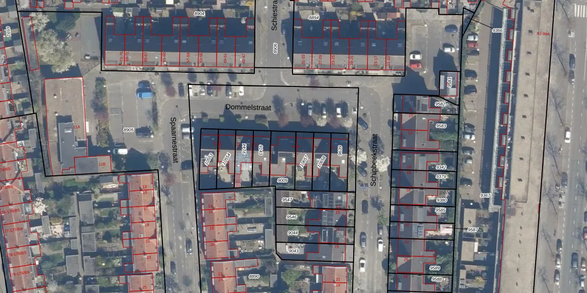 Gebruik de zoekbalk of klik op een perceel voor informatie over de adressen binnen dit perceel.