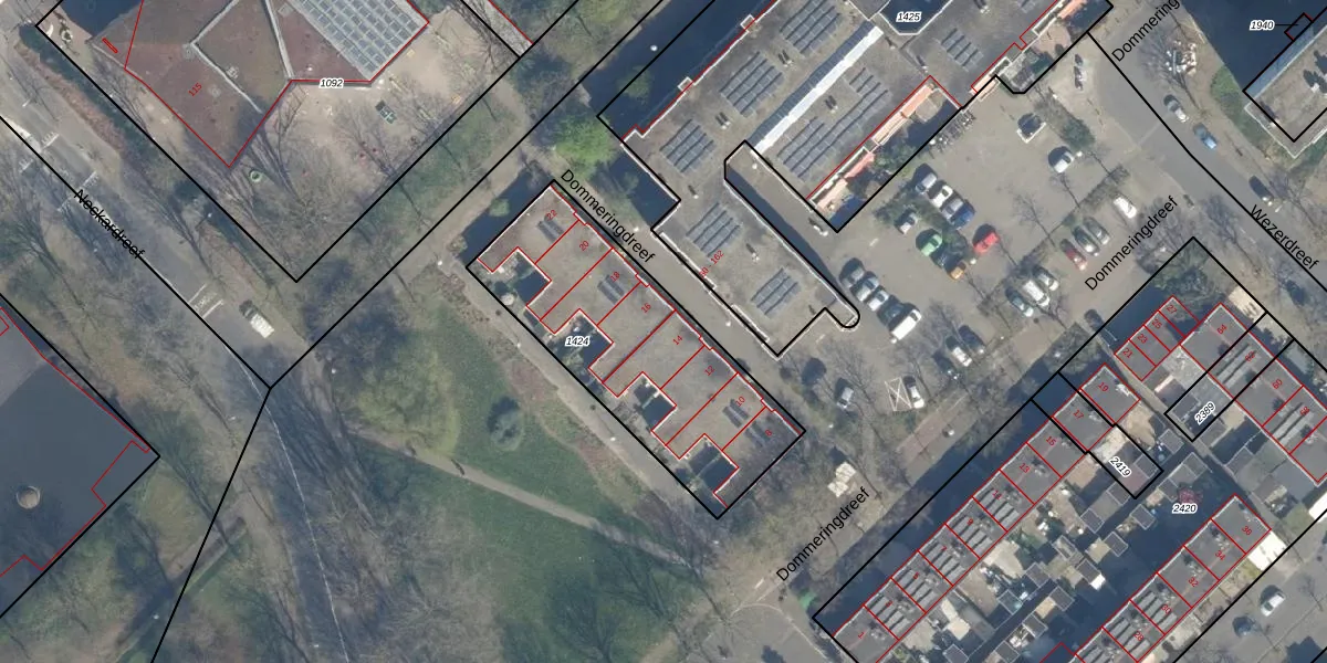 Dommeringdreef 14 is gelegen op kadastraal perceel UTT00H1424. Deze kadastrale aanduiding is uniek en wordt gebruikt door het Kadaster om eigendomsrechten en andere zakelijke rechten vast te leggen. Het perceel maakt onderdeel uit van de kadastrale gemeente Utrecht.