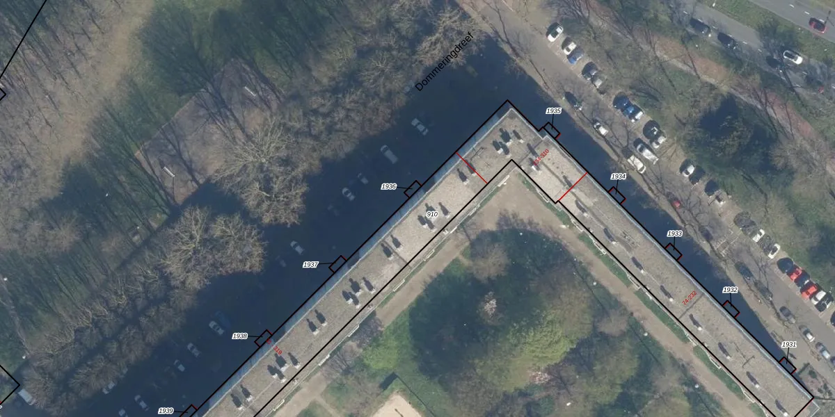 Het perceel waarop Dommeringdreef 291 staat heeft een oppervlakte van 2495 m². Dit is een zeer groot perceel. De perceeloppervlakte wordt geregistreerd door het Kadaster. Gedetailleerde informatie over de maten van dit perceel kunt u vinden in het rapport Kadastrale kaart met maatvoering van Dommeringdreef 291.