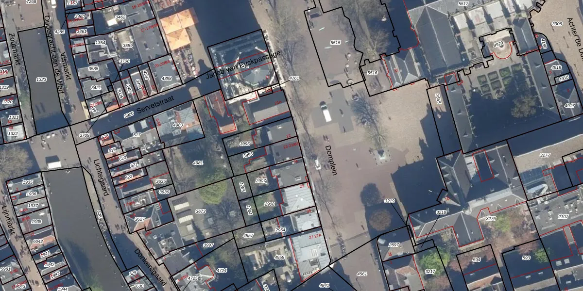 Domplein 23-BS is gelegen op kadastraal perceel UTT00B3996. Deze kadastrale aanduiding is uniek en wordt gebruikt door het Kadaster om eigendomsrechten en andere zakelijke rechten vast te leggen. Het perceel maakt onderdeel uit van de kadastrale gemeente Utrecht.