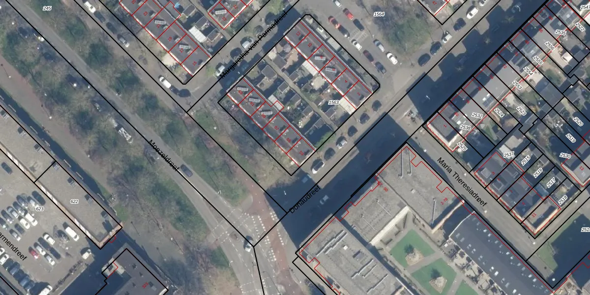 Donaudreef 53 is gelegen op kadastraal perceel UTT00H1563. Deze kadastrale aanduiding is uniek en wordt gebruikt door het Kadaster om eigendomsrechten en andere zakelijke rechten vast te leggen. Het perceel maakt onderdeel uit van de kadastrale gemeente Utrecht.