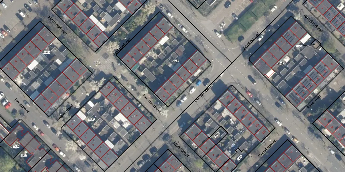 Het perceel waarop Donaudreef 9 staat heeft een oppervlakte van 1524 m². Dit is een zeer groot perceel. De perceeloppervlakte wordt geregistreerd door het Kadaster. Gedetailleerde informatie over de maten van dit perceel kunt u vinden in het rapport Kadastrale kaart met maatvoering van Donaudreef 9.