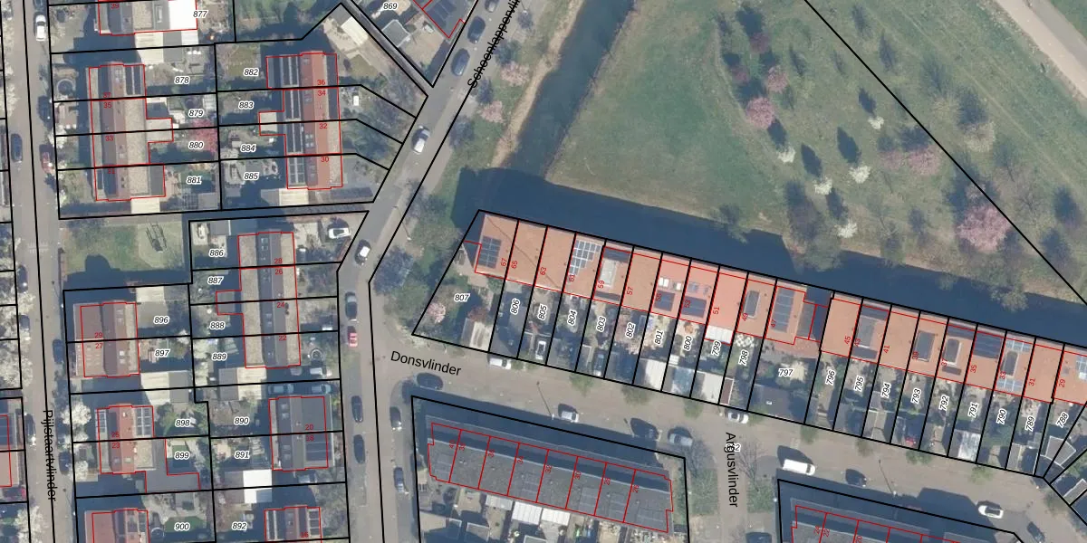 Gebruik de zoekbalk of klik op een perceel voor informatie over de adressen binnen dit perceel.