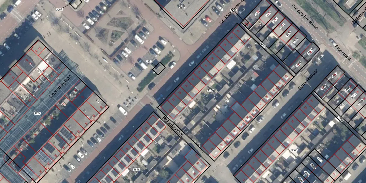 Dr. Max Euwestraat 25 is gelegen op kadastraal perceel ZLN02B3877. Deze kadastrale aanduiding is uniek en wordt gebruikt door het Kadaster om eigendomsrechten en andere zakelijke rechten vast te leggen. Het perceel maakt onderdeel uit van de kadastrale gemeente Zuilen.
