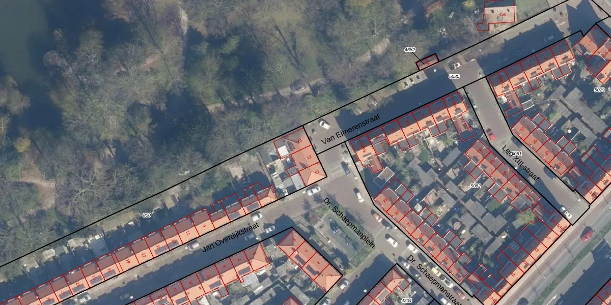 Dr. Schaepmanstraat 12 is gelegen op kadastraal perceel ZLN02C800. Deze kadastrale aanduiding is uniek en wordt gebruikt door het Kadaster om eigendomsrechten en andere zakelijke rechten vast te leggen. Het perceel maakt onderdeel uit van de kadastrale gemeente Zuilen.