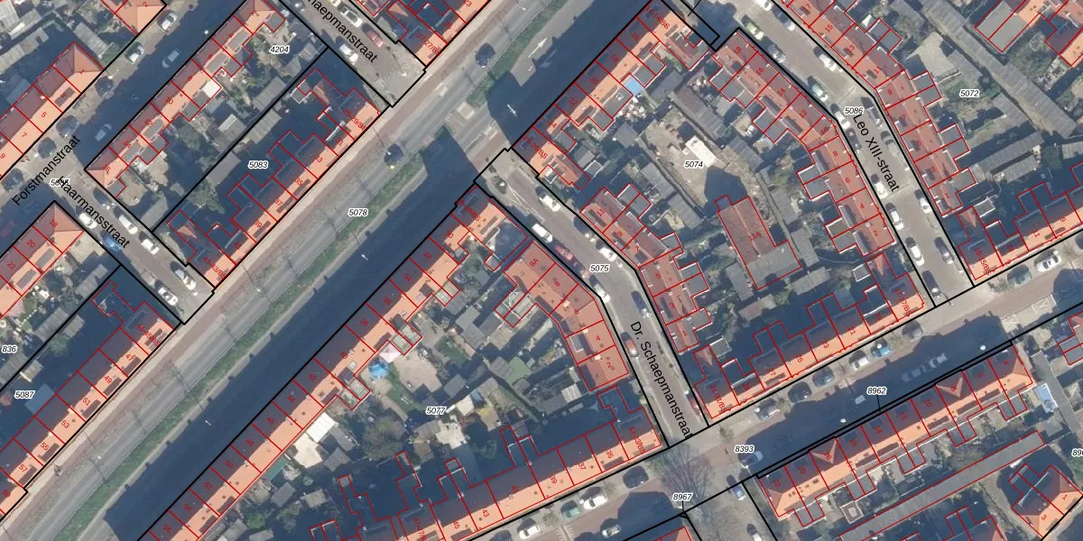 Dr. Schaepmanstraat 8-A is gelegen op kadastraal perceel ZLN02C5077. Deze kadastrale aanduiding is uniek en wordt gebruikt door het Kadaster om eigendomsrechten en andere zakelijke rechten vast te leggen. Het perceel maakt onderdeel uit van de kadastrale gemeente Zuilen.