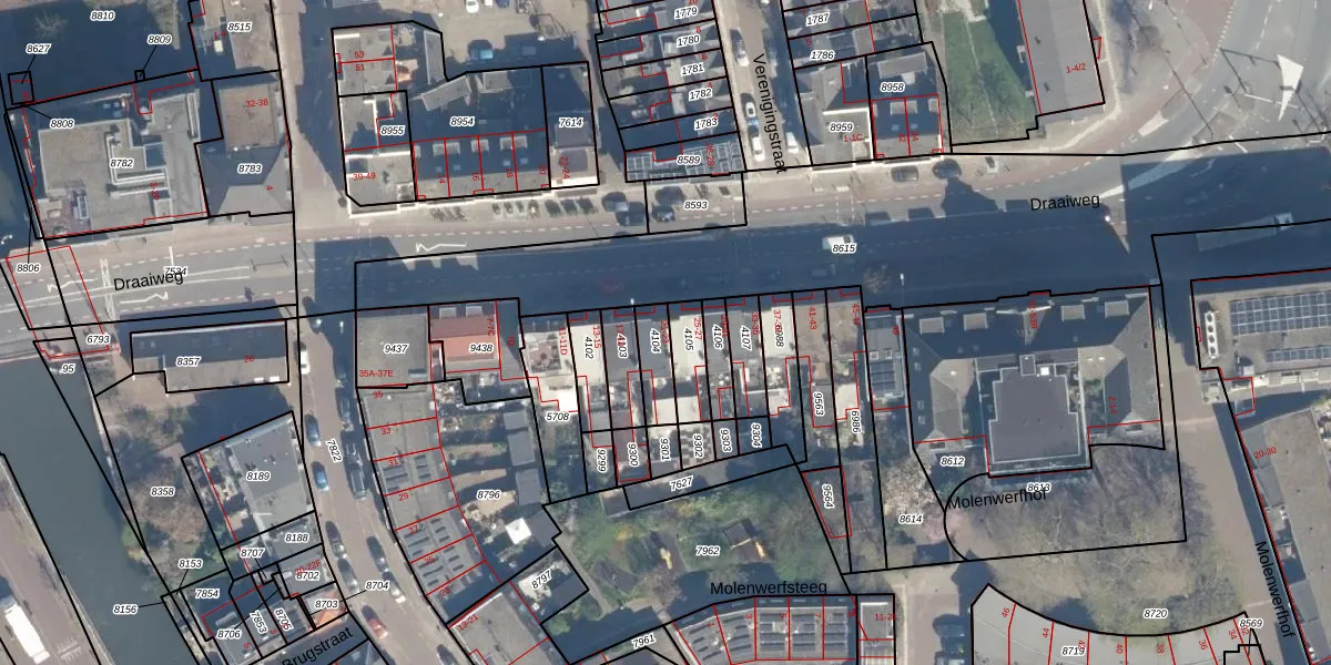 Het perceel waarop Draaiweg 23 staat heeft een oppervlakte van 92 m². Dit is een klein perceel. De perceeloppervlakte wordt geregistreerd door het Kadaster. Gedetailleerde informatie over de maten van dit perceel kunt u vinden in het rapport Kadastrale kaart met maatvoering van Draaiweg 23.