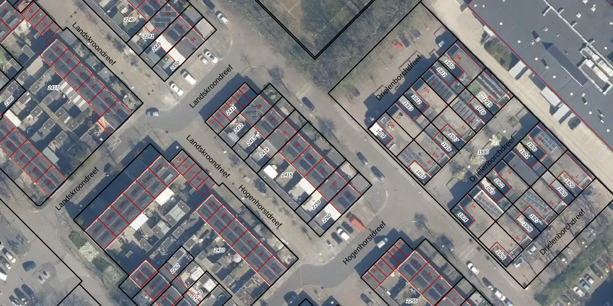 Het perceel waarop Drielenborchdreef 24 staat heeft een oppervlakte van 416 m². Dit is een groot perceel. De perceeloppervlakte wordt geregistreerd door het Kadaster. Gedetailleerde informatie over de maten van dit perceel kunt u vinden in het rapport Kadastrale kaart met maatvoering van Drielenborchdreef 24.