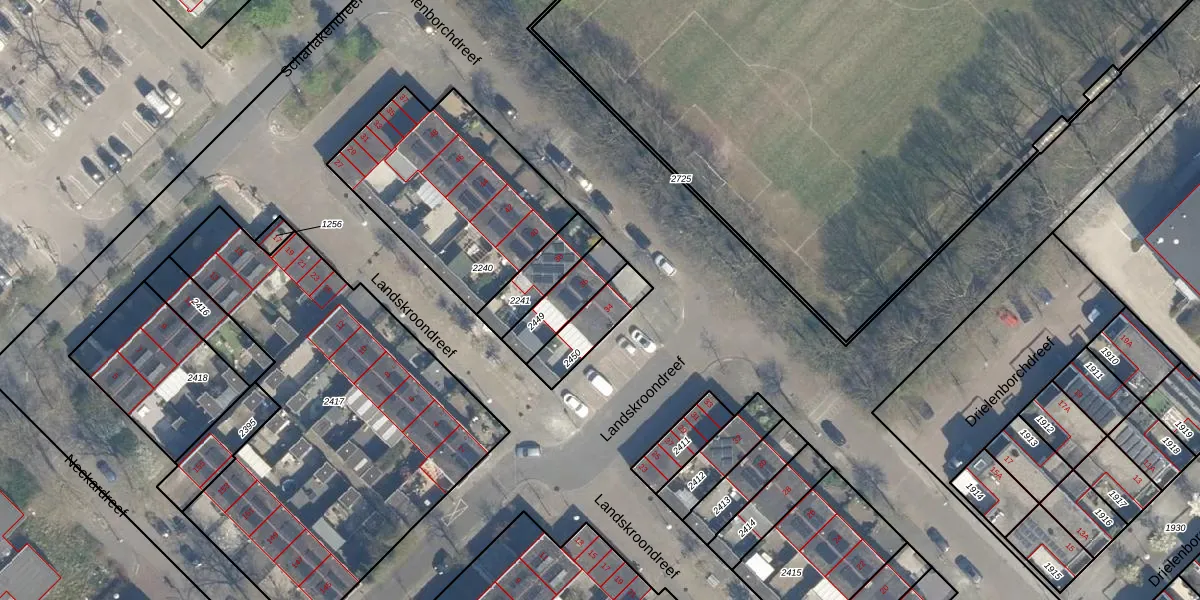 Gebruik de zoekbalk of klik op een perceel voor informatie over de adressen binnen dit perceel.