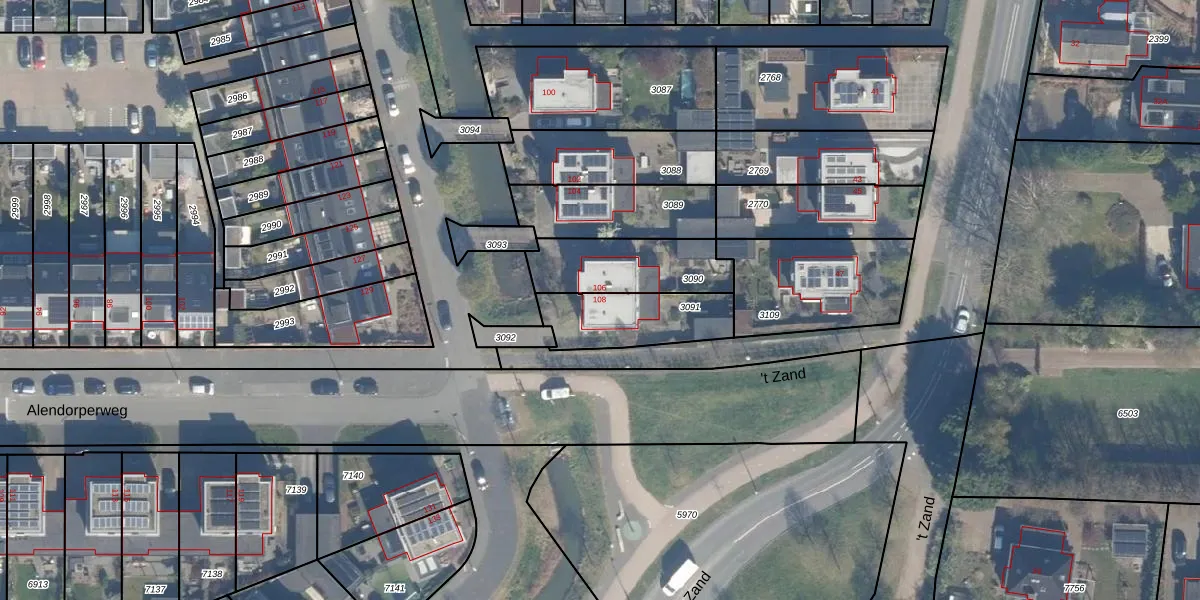 Gebruik de zoekbalk of klik op een perceel voor informatie over de adressen binnen dit perceel.