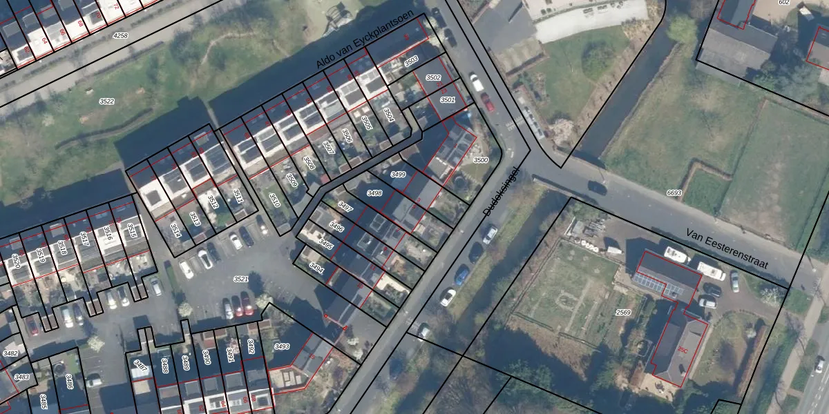Dudoksingel 5 is gelegen op kadastraal perceel UTT00V3498. Deze kadastrale aanduiding is uniek en wordt gebruikt door het Kadaster om eigendomsrechten en andere zakelijke rechten vast te leggen. Het perceel maakt onderdeel uit van de kadastrale gemeente Utrecht.