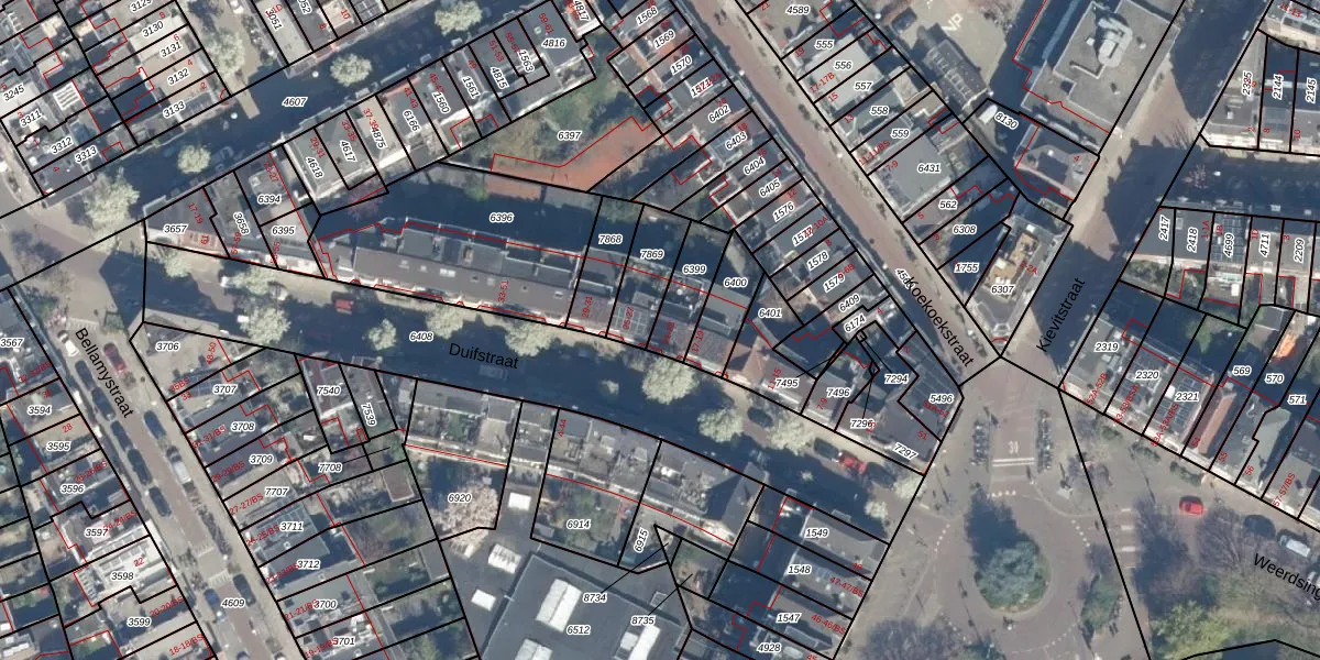 Het perceel waarop Duifstraat 21 staat heeft een oppervlakte van 136 m². Dit is een middelgroot perceel. De perceeloppervlakte wordt geregistreerd door het Kadaster. Gedetailleerde informatie over de maten van dit perceel kunt u vinden in het rapport Kadastrale kaart met maatvoering van Duifstraat 21.