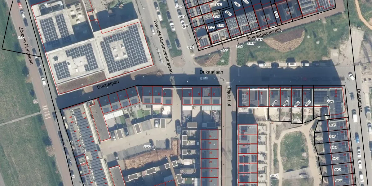 Het perceel waarop Dukaatlaan 58 staat heeft een oppervlakte van 4945 m². Dit is een zeer groot perceel. De perceeloppervlakte wordt geregistreerd door het Kadaster. Gedetailleerde informatie over de maten van dit perceel kunt u vinden in het rapport Kadastrale kaart met maatvoering van Dukaatlaan 58.