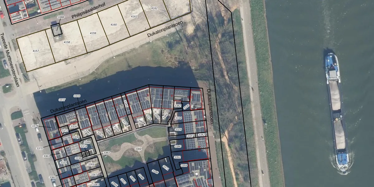 Het perceel waarop Dukatonplantsoen 21 staat heeft een oppervlakte van 84 m². Dit is een klein perceel. De perceeloppervlakte wordt geregistreerd door het Kadaster. Gedetailleerde informatie over de maten van dit perceel kunt u vinden in het rapport Kadastrale kaart met maatvoering van Dukatonplantsoen 21.