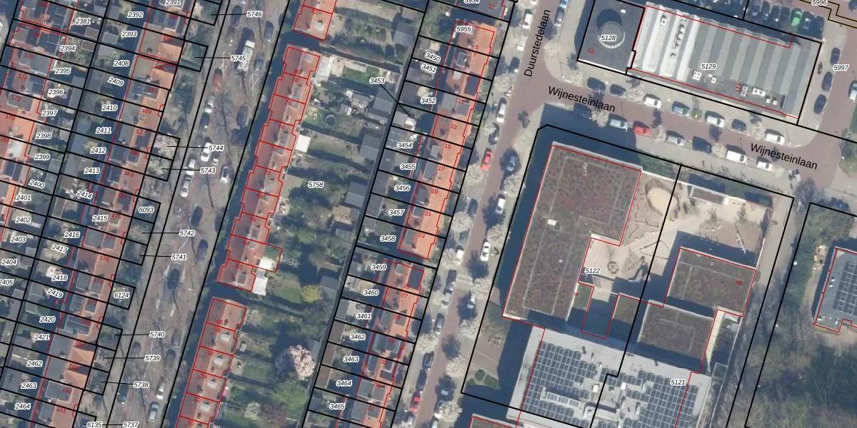 Gebruik de zoekbalk of klik op een perceel voor informatie over de adressen binnen dit perceel.