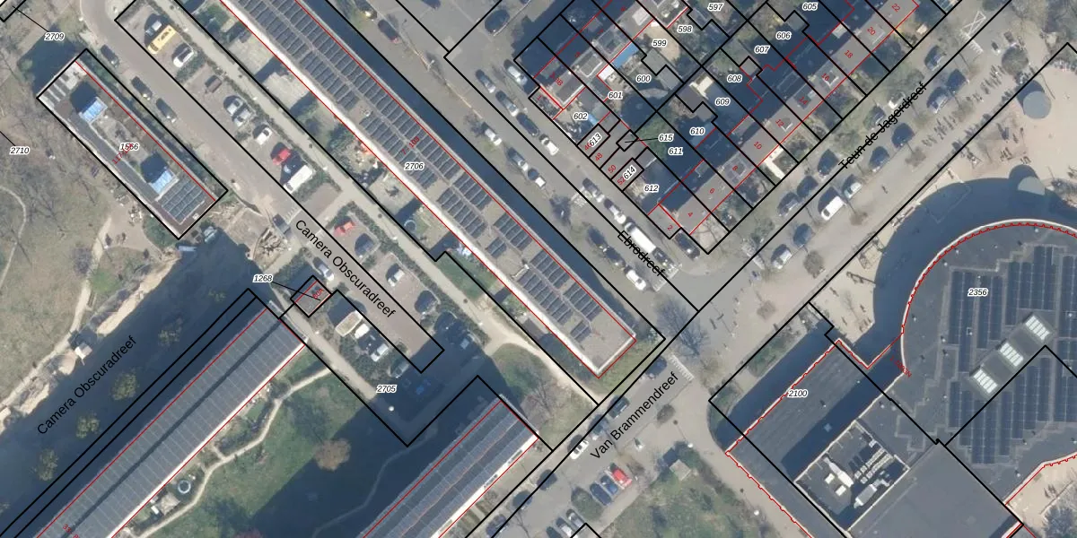 Het perceel waarop het adres ligt is UTT00-H-2706. De afkorting 'UTT00' staat voor kadastrale gemeente Utrecht. De gemiddelde perceeloppervlakte in de kadastrale gemeente Utrecht is 1439,02 m². Dit perceel is met zijn 2179 m² dus groter dan gemiddeld. Het grootste perceel in de kadastrale gemeente is 90,1 ha. Het kleinste perceel heeft een oppervlakte van 0 m². Op het perceel liggen in totaal 50 adressen. De huidige grenzen van het perceel zijn digitaal in de Basisregistratie Kadaster (BRK) geregistreerd op 11-04-2025.