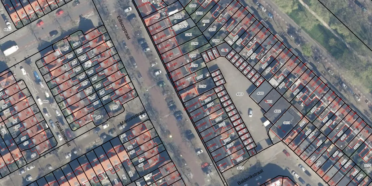 Het perceel waarop Edisonstraat 107-BS staat heeft een oppervlakte van 133 m². Dit is een middelgroot perceel. De perceeloppervlakte wordt geregistreerd door het Kadaster. Gedetailleerde informatie over de maten van dit perceel kunt u vinden in het rapport Kadastrale kaart met maatvoering van Edisonstraat 107-BS.