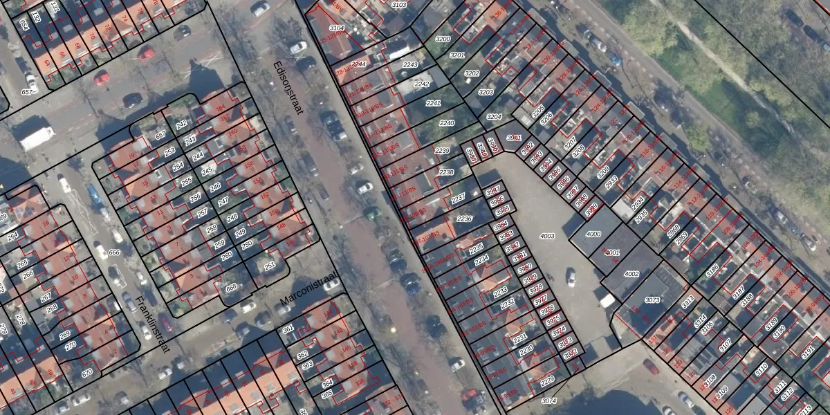 Het perceel waarop Edisonstraat 109 staat heeft een oppervlakte van 112 m². Dit is een middelgroot perceel. De perceeloppervlakte wordt geregistreerd door het Kadaster. Gedetailleerde informatie over de maten van dit perceel kunt u vinden in het rapport Kadastrale kaart met maatvoering van Edisonstraat 109.