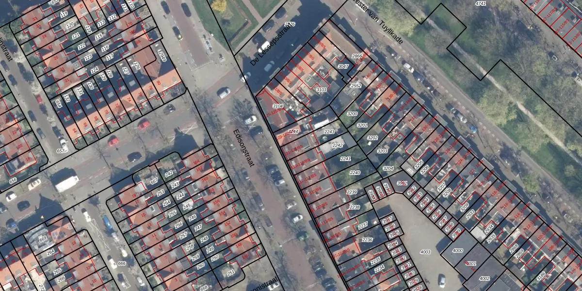 Edisonstraat 121 is gelegen op kadastraal perceel ZLN02B2243. Deze kadastrale aanduiding is uniek en wordt gebruikt door het Kadaster om eigendomsrechten en andere zakelijke rechten vast te leggen. Het perceel maakt onderdeel uit van de kadastrale gemeente Zuilen.