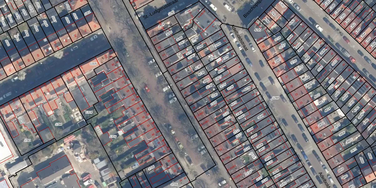 Gebruik de zoekbalk of klik op een perceel voor informatie over de adressen binnen dit perceel.
