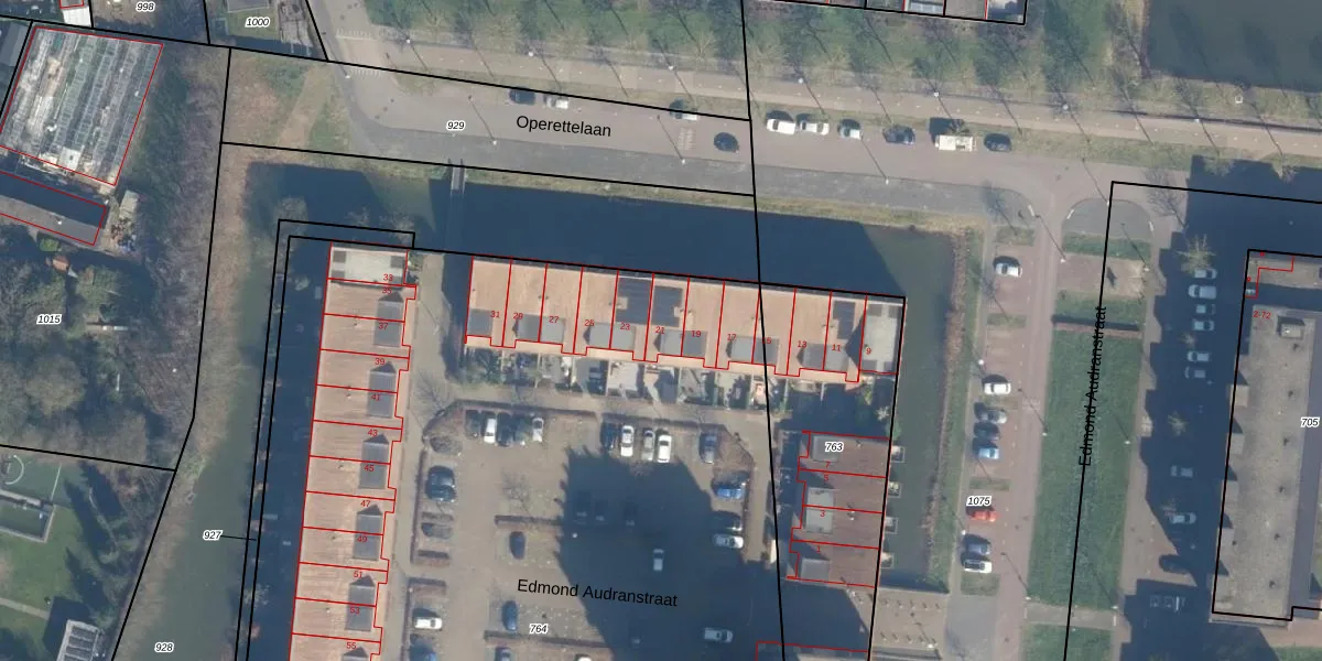 Het perceel waarop Edmond Audranstraat 21 staat heeft een oppervlakte van 8100 m². Dit is een zeer groot perceel. De perceeloppervlakte wordt geregistreerd door het Kadaster. Gedetailleerde informatie over de maten van dit perceel kunt u vinden in het rapport Kadastrale kaart met maatvoering van Edmond Audranstraat 21.