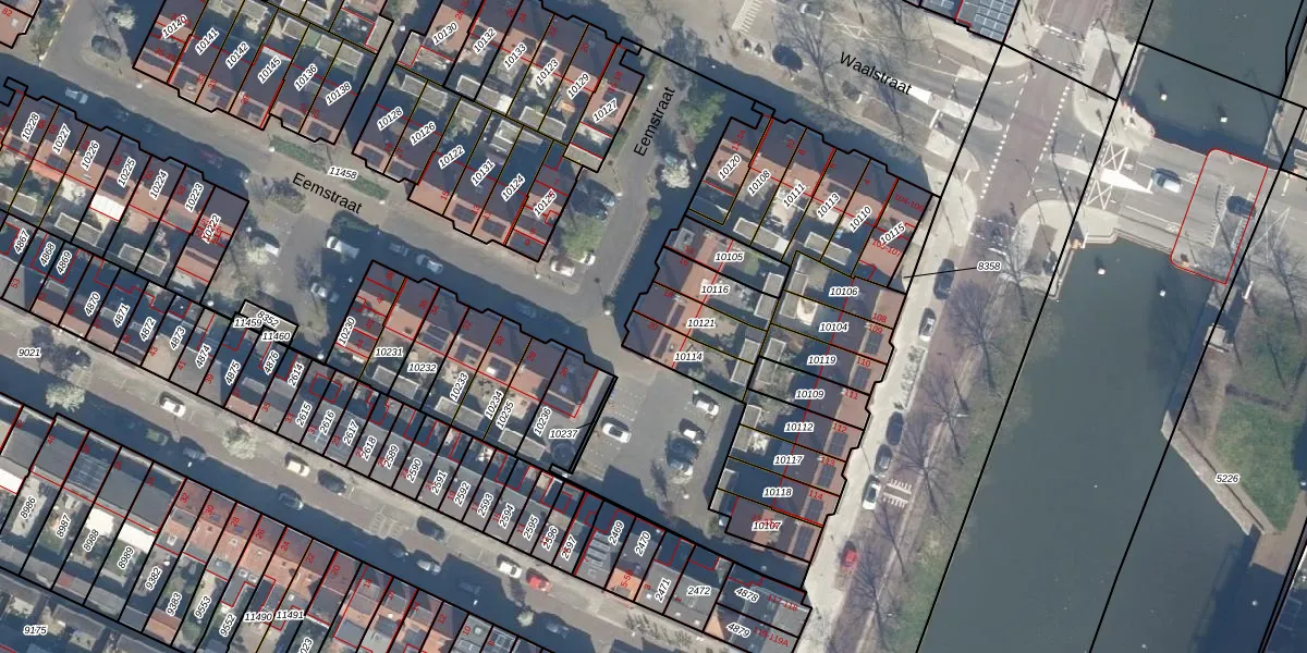 Gebruik de zoekbalk of klik op een perceel voor informatie over de adressen binnen dit perceel.