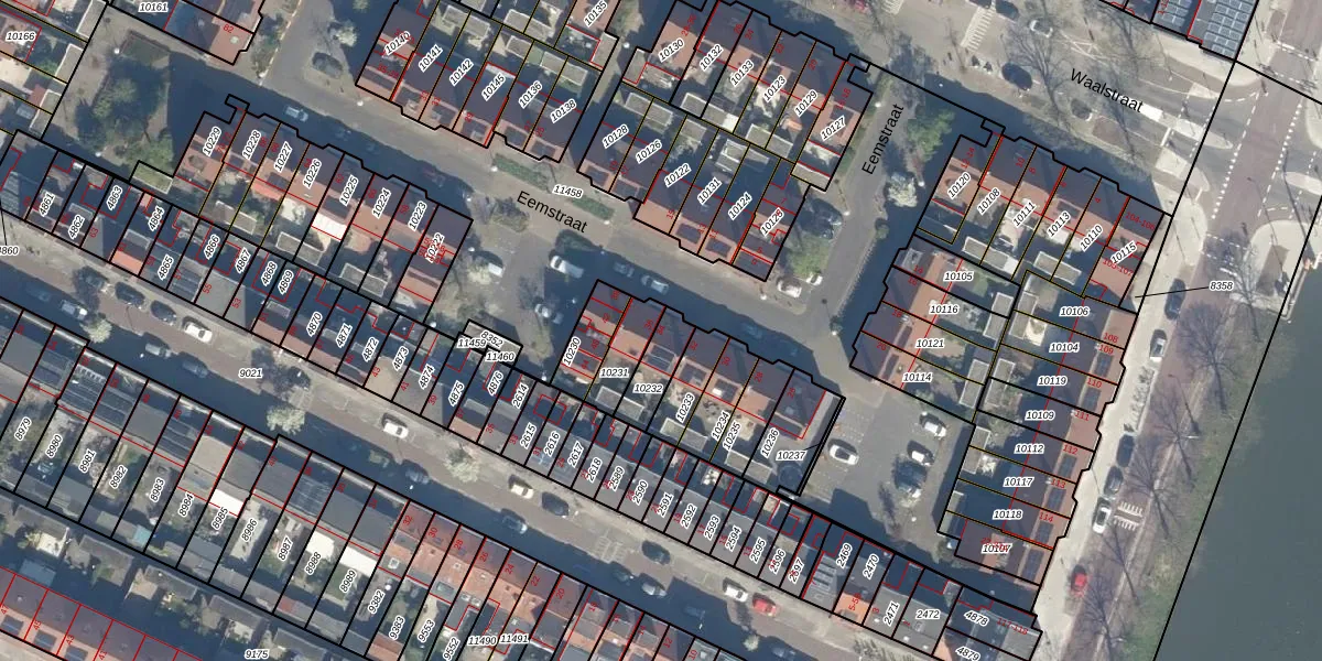 Gebruik de zoekbalk of klik op een perceel voor informatie over de adressen binnen dit perceel.