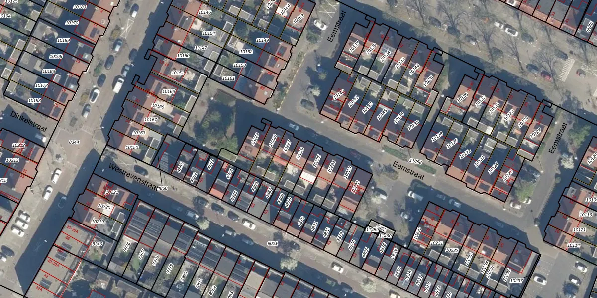 Gebruik de zoekbalk of klik op een perceel voor informatie over de adressen binnen dit perceel.