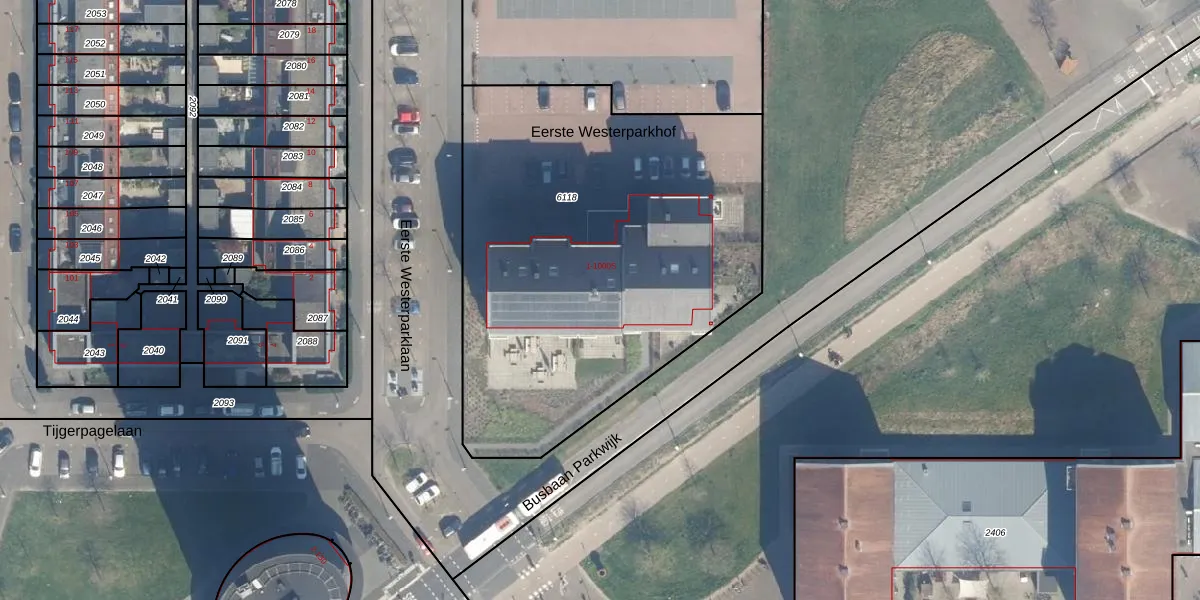 Het perceel waarop Eerste Westerparkhof 3 staat heeft een oppervlakte van 2470 m². Dit is een zeer groot perceel. De perceeloppervlakte wordt geregistreerd door het Kadaster. Gedetailleerde informatie over de maten van dit perceel kunt u vinden in het rapport Kadastrale kaart met maatvoering van Eerste Westerparkhof 3.
