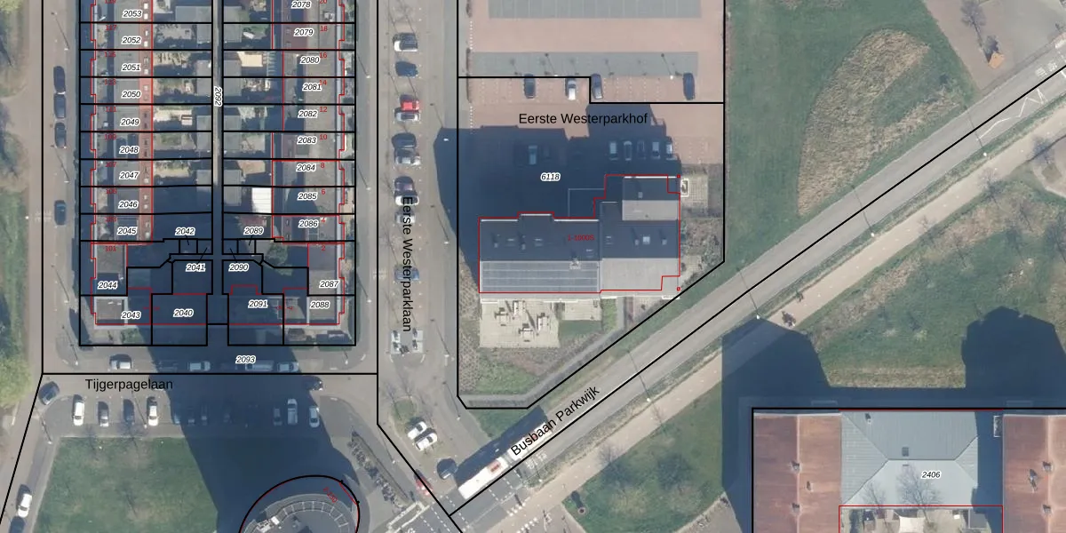 Het perceel waarop Eerste Westerparkhof 7 staat heeft een oppervlakte van 2470 m². Dit is een zeer groot perceel. De perceeloppervlakte wordt geregistreerd door het Kadaster. Gedetailleerde informatie over de maten van dit perceel kunt u vinden in het rapport Kadastrale kaart met maatvoering van Eerste Westerparkhof 7.