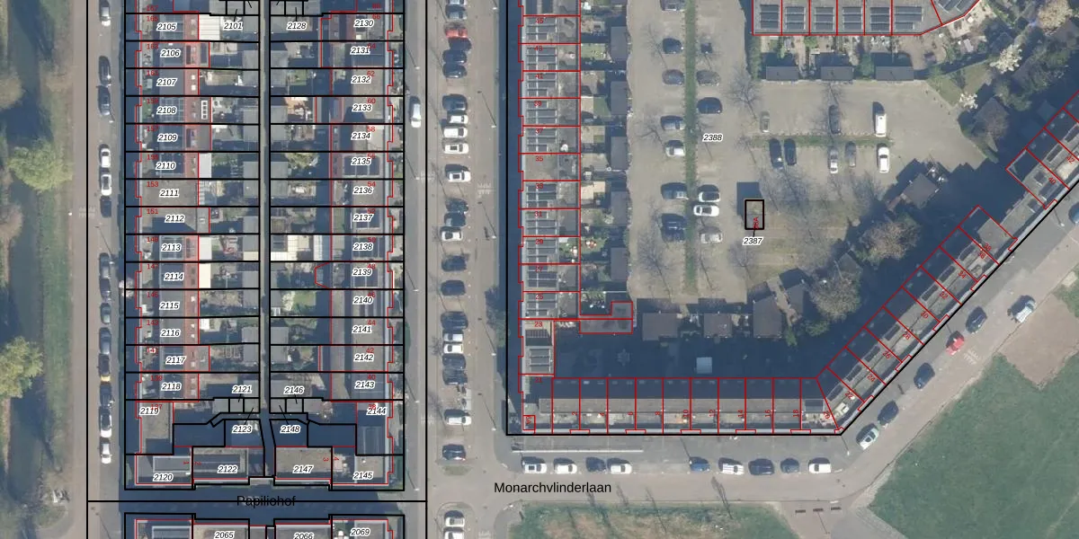 Het perceel waarop het adres ligt is UTT00-V-2388. De afkorting 'UTT00' staat voor kadastrale gemeente Utrecht. De gemiddelde perceeloppervlakte in de kadastrale gemeente Utrecht is 1438,48 m². Dit perceel is met zijn 1,3 ha dus groter dan gemiddeld. Het kleinste perceel in de kadastrale gemeente is 0 m² groot. De grootste perceeloppervlakte is 90,1 ha. Op het perceel zijn 90 adressen aanwezig. De huidige grenzen van het perceel zijn digitaal in de Basisregistratie Kadaster (BRK) geregistreerd op 15-12-2009.