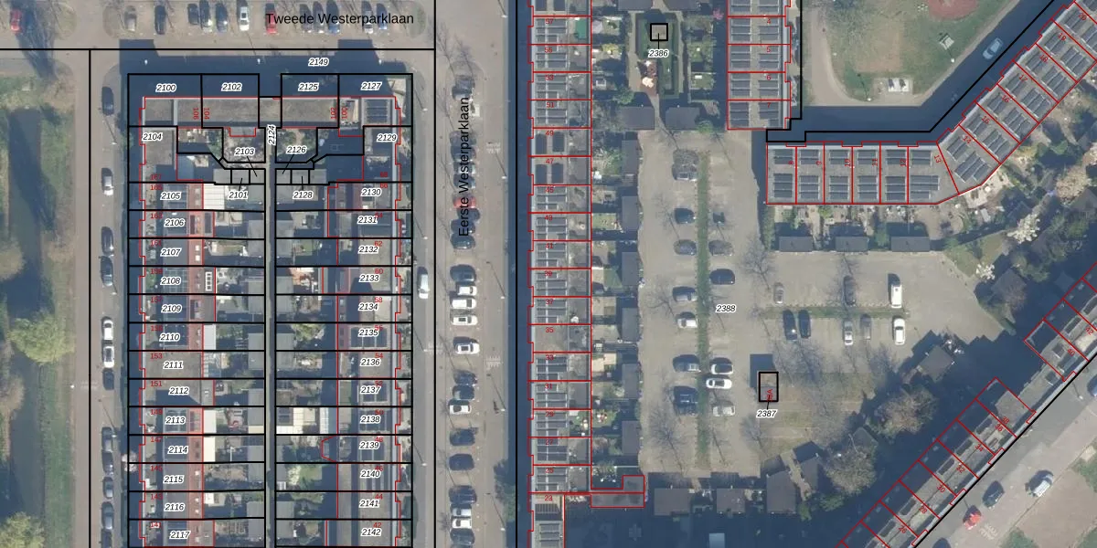 Eerste Westerparklaan 39 is gelegen op kadastraal perceel UTT00V2388. Deze kadastrale aanduiding is uniek en wordt gebruikt door het Kadaster om eigendomsrechten en andere zakelijke rechten vast te leggen. Het perceel maakt onderdeel uit van de kadastrale gemeente Utrecht.